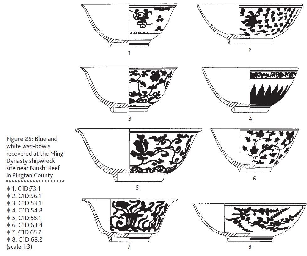 - Underwater Archaeological Team of Wanjiao Reef Site Locus No. 1. 2006. Donghai Pingtan Wanjiao yihao chushui ciqi 东海平潭碗礁一号出水瓷器 (Porcelain Wares Recovered in Wanjiao Reef Site Locus No.1 in Pingtan County, East China Sea), p. 20. Science Press.